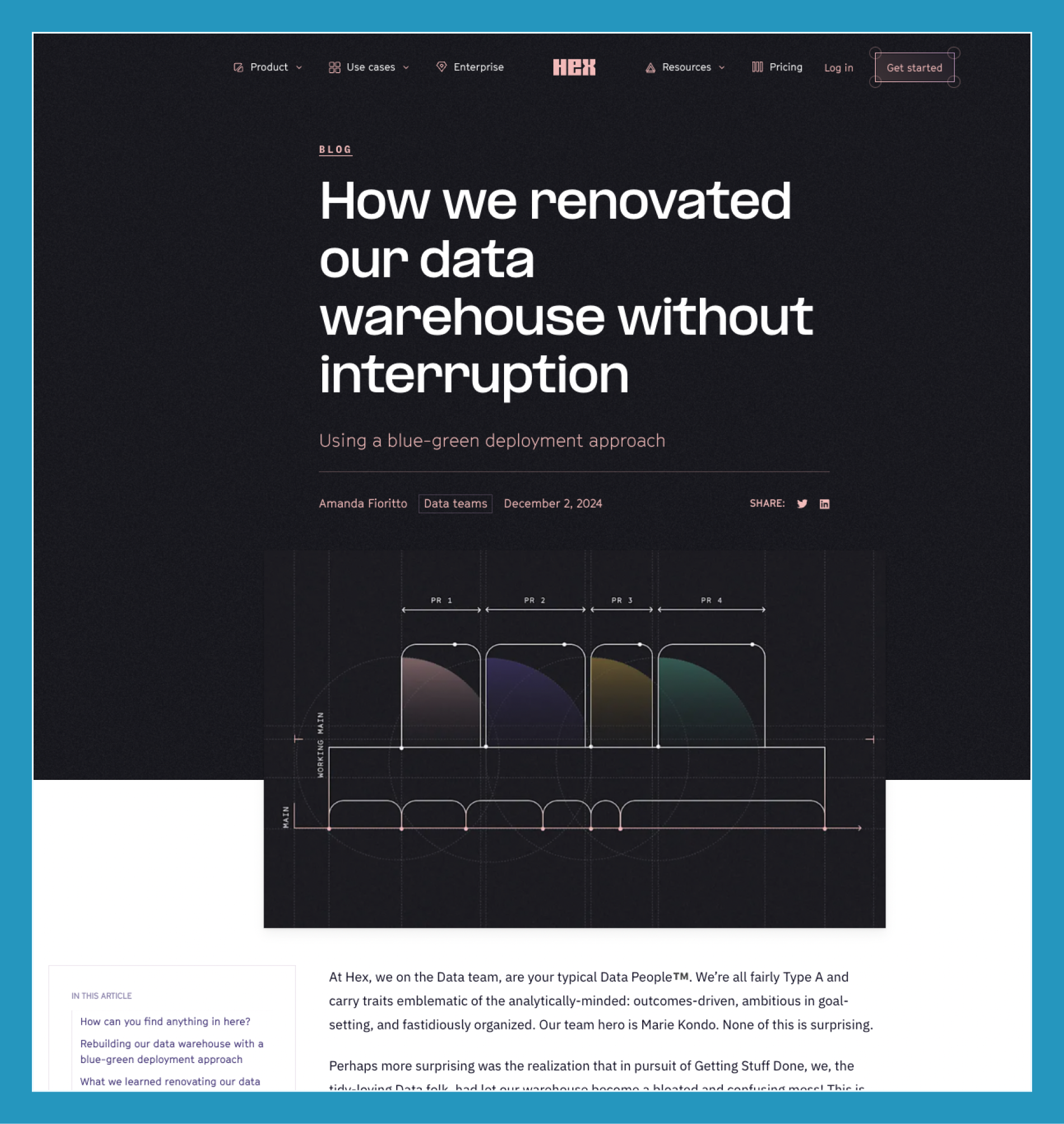 It acts as a case study or product use case blog – sharing an example of how a team uses the Hex product in real terms, and it just so happens that that team is Hex’s themselves.