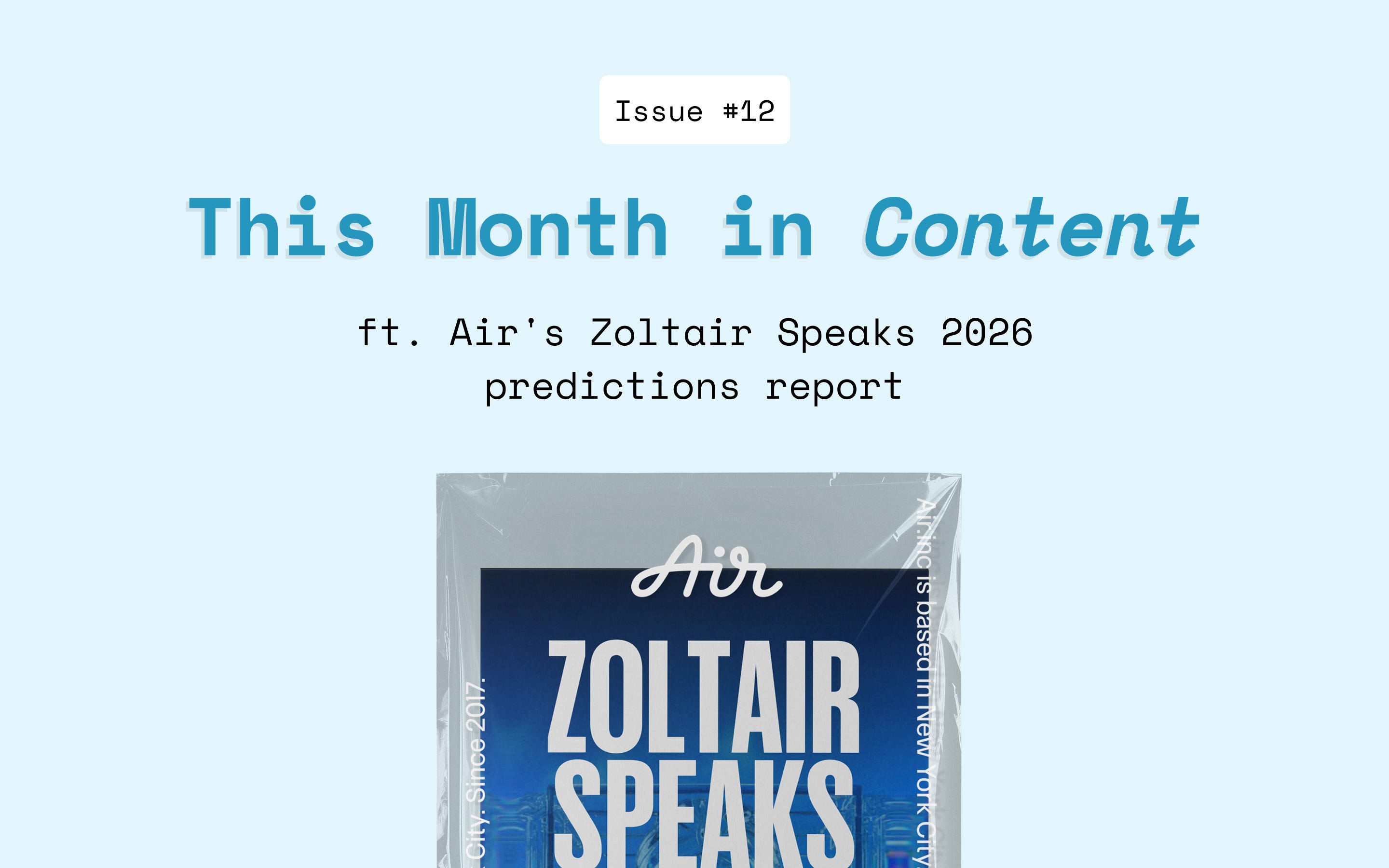 Self-awareness cuts through the noise. Every brand publishes predictions or trends content this time of year, and most of it blends together into a mush of rehashed advice. By acknowledging upfront that predictions reports are overdone, Air immediately differentiates themselves. The Zoltar reference reinforces this – it’s whimsical and nostalgic (appeals to marketers who appreciate creative references), thematically perfect (fortune teller = predictions), and shows Air’s brand voice is playful rather than corporate. It’s the kind of creative touch that makes content memorable.